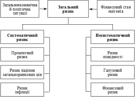 Ризик інвестування коштів у цінні папери – це вірогідність збитків або недоотримання очікуваного доходу. Західні економісти розрізняють дві категорії ризику – систематичний і несистематичний, – які в кінцевому підсумку становлять загальний ризик інвестицій.