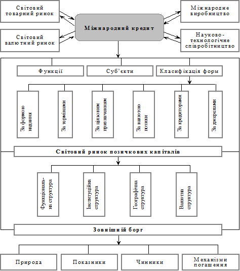 Рис. 1.1. Структурно-функціональна схема руху позикового капіталу в рамках міжнародних економічних відносин