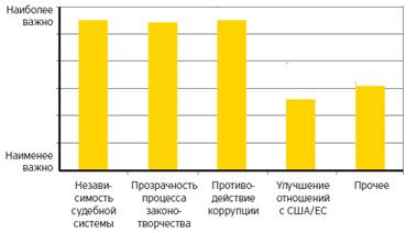 Тенденция к росту очевидна, что не может не радовать. Компания опросила множество респондентов. Основной вопрос был задан такой: «Какие меры необходимо принять Правительству РФ для стимулирования прямых иностранных инвестиций». В ходе опроса был выявлен интересный аспект. Некоторые респонденты отметили, что в дальнейшем прямые иностранные инвестиции будут осуществляться на условиях, устанавливаемых российским правительством и его структурами.