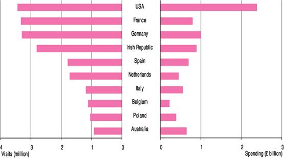 Общее число зарубежных туристов, посетивших Великобританию в 2006 году, возросло на 6% по сравнению аналогичным периодом предыдущего года (с 29,9 млн. до 31,6 млн. посетителей).