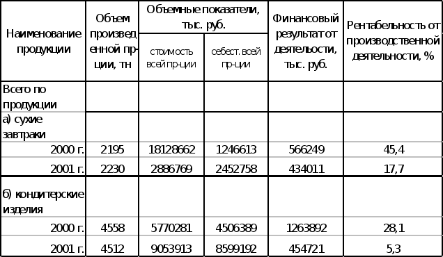 Ассортимент продукции кондитерского комбината довольно широк. Естественно, отдельные виды продукции пользуются большим, другие меньшим спросом среди потребителей. Соответственно, объемы их производства, затраты на производство, стоимость и себестоимость значительно отличаются. Так по данным таблицы 4.2.2. мы можем сказать, что производство сухих завтраков в течение последних двух лет было более рентабельным, чем производство кондитерских изделий.