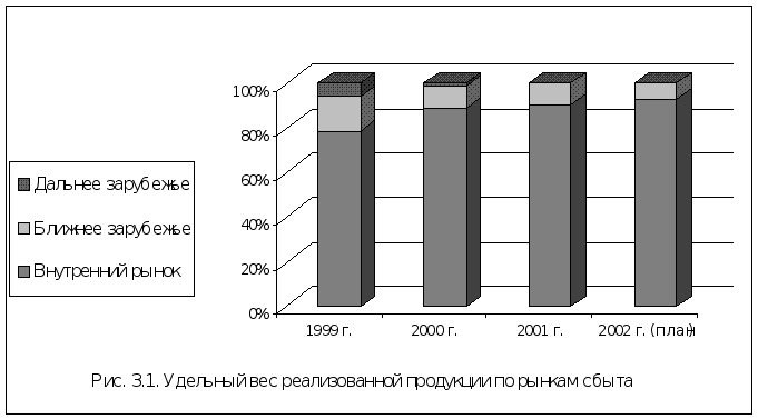 На 31,4 % сократился объем экспорта продукции, его удельный вес в 2001 г. составил всего лишь 25,3 %, в то время как в 1999 г. – 41 %. Объемы импортных поставок также сократились, но в меньшей степени (на 14,6 %). Однако сальдо оставалось положительным и выросло за рассматриваемый период в 4 раза. Реализация продукции по бартеру также была снижена, удельный вес бартера сократился на 8,9 п.п.