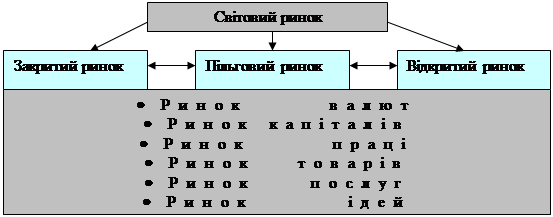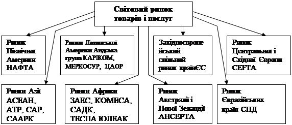 Згідно з регіональною структурою світового ринку розрізняють ринки окремих країн або їх угруповань (схема 2).