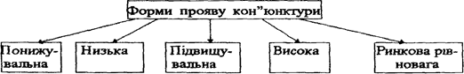 Результатом взаємодії КФФ та УФК є різні форми прояву економічної кон’юнктури (ФПК). Провідними ознаками, за якими їх відрізняють, є співвідношення попиту і пропозиції, динаміка світових цін, ділова активність на ринку (число укладених угод).