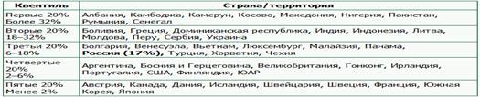 Однако, при рассмотрении данных замера частоты выплаты взяток, реализованного Транесперенси Интернэшнл, складывается несколько иная картина (см. табл. 4).