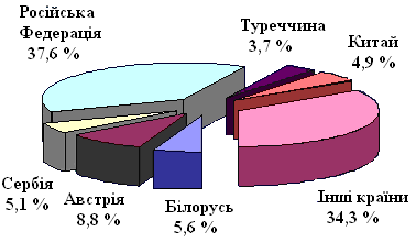 Рис.2 Географічна структура експорту товарів Полтавської області у 2008 році (побудована за даними [ 3 ]).