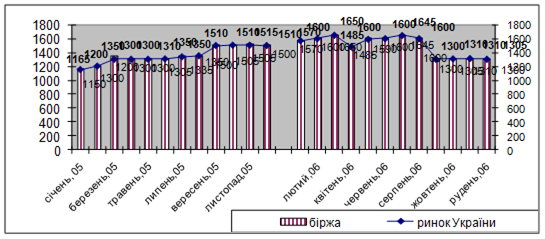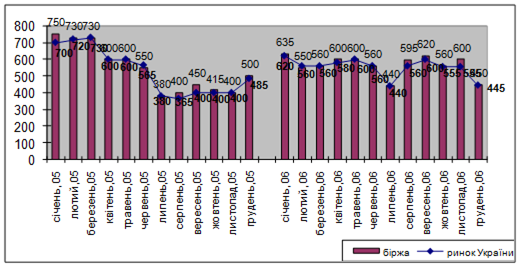 4. На початку 2006 року загальна вартість укладених угод становила 106 335 911,87 грн. З них – 752 внутрішні угоди на суму 62 661 547,25 грн., 77 зовнішніх угод на суму 18 129 401,08 грн. та 41 імпортна угода на суму 25 544 963,54 грн. середні ціни на сільськогосподарську продукцію, що склалися на Товарній біржі АПК центральних областей України та ціни біржового ринку України мають рівні показники і на Товарній біржі АПК ЦО України навіть перевищують.