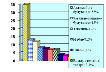 Перше місце посідають машини (27%), друге - транспортні засоби (12%), далі сировина та вироби хімічної й фармацевтичної промисловості (10%), електротехнічні вироби (10%) і текстиль (9%). На продукти харчової промисловості припадає 10%.