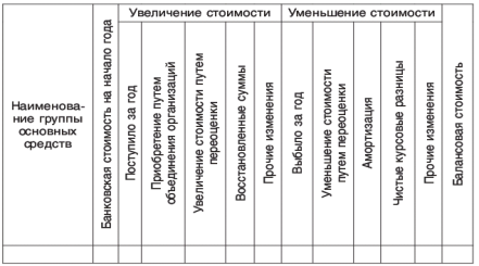 · о движении основных средств в течение отчетного года по основным группам (поступление, выбытие и т.п.);