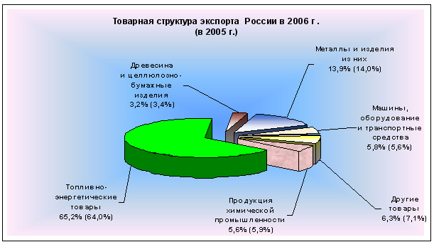 В товарной структуре экспорта в страны дальнего зарубежья состав основных товарных позиций по сравнению с прошлым годом практически не изменился. На первой строке товарной структуры находится экспорт товаров топливно-энергетического комплекса, доля которых составляет 67,7% от всего объема экспорта в эти страны (68,5% в 2006 году).