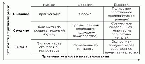 Рис. 2.2 Матрица выбора способа выхода на международные рынки