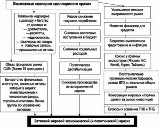Такова ситуация с ролью доллара в сегодняшней мировой экономике. И вот почему вопрос о крахе, кризисе или даже о незначительной девальвации доллара оказывается столь важным, столь серьезным предметом обсуждения не только в США, но и во всем мире.