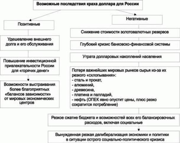 Перечисленное, на наш взгляд, в основном исчерпывает перечень крупных возможных позитивных последствий краха доллара для России и для нашей экономики.