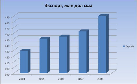 Рис. №4 Изменение экспорта с 2004 по 2008 гг.