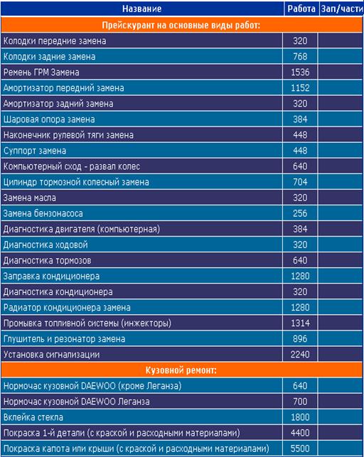 | Услуги тюннига | Следования за лидером | Цены устанавливаются в соответствии с ценами ведущего дистрибьютора сети и требованиями производителя |
