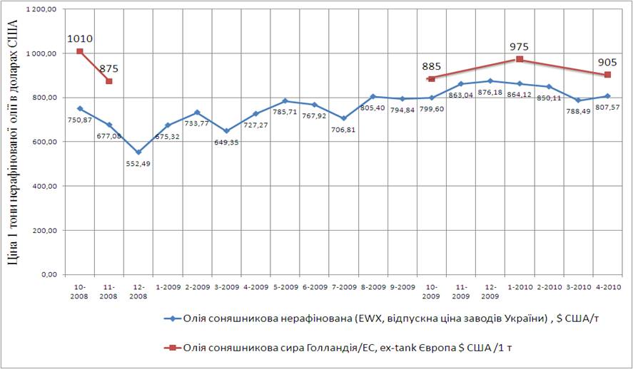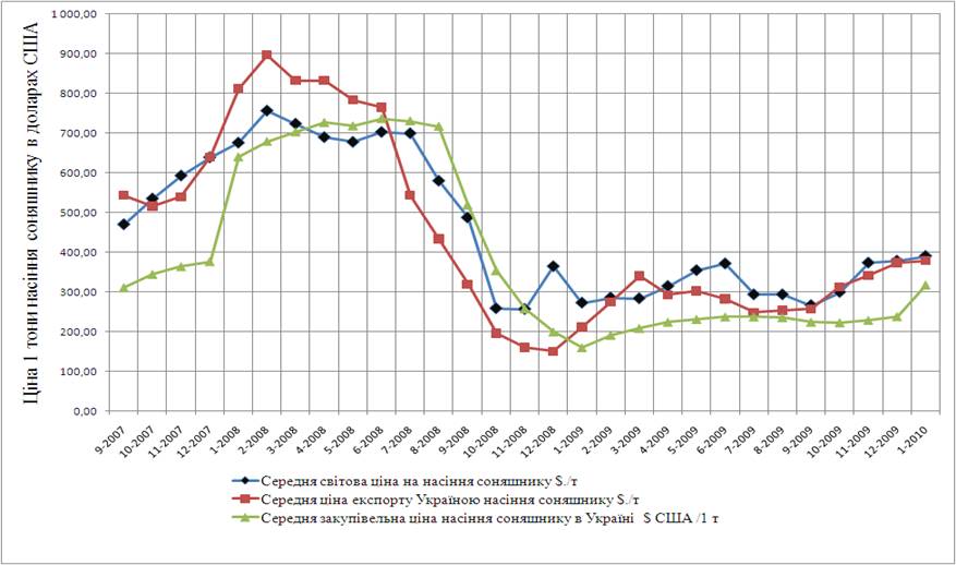Постійне зростання вітчизняних потужностей по переробці насіння олійних культур в Україні створює конкурентне середовище та сприятливу цінову ситуацію як для сільгосптоваровиробників, так і для переробників. Внаслідок цього, а також, враховуючи ситуацію на світовому ринку, на початку сезону 2009/2010 МР не відбулося різкого зниження закупівельних цін на насіння соняшнику, як це відбулось на початку 2008/2009 МР.