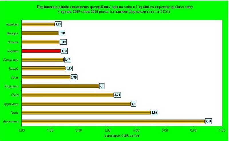 5. Індекс внутрішніх споживчих цін на олію за 2008 рік – 98,3%, за 12 місяців 2009 року – 111,7% (в т.ч. у грудні 2009/2010 МР – 101,7%).