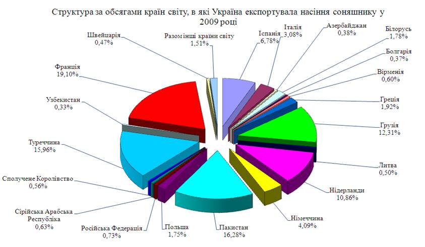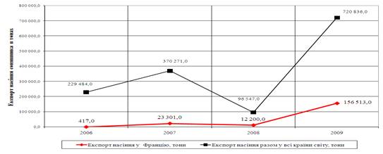 Під впливом сприятливої кон'юнктури світового ринку за попередніми даними у 2008/2009 МР експорт насіння соняшника пожвавився і склав 767 тис. тонн, що у 10 разів більше проти 2007/2008 МР [47].
