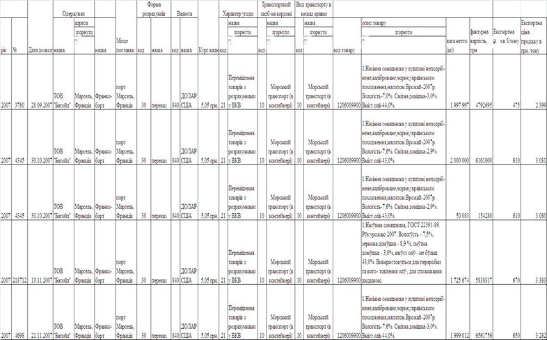 ТОВ "ЗАГОТЗЕРНО" (31761993, Межівський район, Дніпропетровської області, Україна), іменоване надалі "Продавець", з одного боку, і ТОВ "Батойл" (Марсель, Франція), іменоване надалі "Покупець", з іншого боку, уклали даний контракт про нижченаведене: