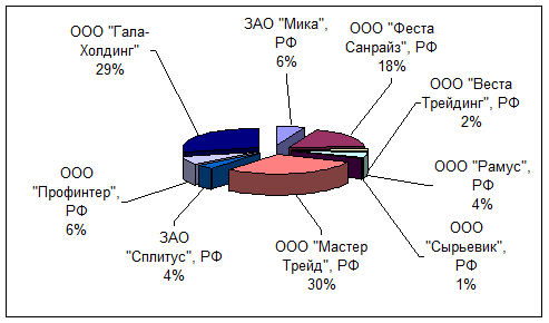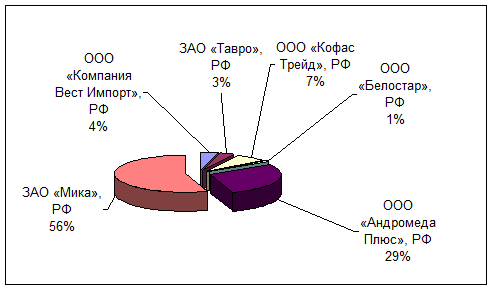 | Месяц | Поставщик | Стоимость, руб. | Уд. вес, % |