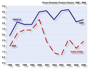 Ріст ВВП Греції у порівнянні із Єврозоною у 1996—2006 роках