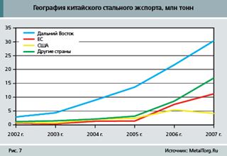 Если еще в начале 2005 года китайские специалисты, прогнозируя потребности страны в импортной руде, называли цифру порядка 240 млн. тонн — относительно умеренное повышение по сравнению с 208 млн. тонн годом ранее. Они, при этом, исходили из двух предпосылок: предполагаемого увеличения производительности местной железорудной отрасли и снижения темпов роста национальной металлургической промышленности. Подъем мировых цен на железную руду стимулировал ускоренный ввод в строй новых мощностей в горнодобывающей отрасли страны. По данным китайских источников, за три первых квартала 2007 года в КНР было произведено почти 280 млн. тонн руды, что на 44% больше, чем за тот же период предыдущего года. Объем же выпуска за весь 2007 год, похоже, достигнет уровня 380-400 млн. тонн.