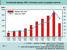 По данным International Iron and Steel Institute, за январь-ноябрь 2008 года в стране было выплавлено более 317,6 млн. тонн стали, что на 25,5% превысило результат аналогичного периода предыдущего года. В то же время, импорт железной руды в Китай за январь-октябрь составил 220 млн. тонн, а по итогам всего года его уровень прогнозируется в районе 260-265 млн. тонн. Собственно говоря, именно это превышение прогнозных 240 млн. тонн и послужило для поставщиков руды обоснованием для нового увеличения стоимости сырья в 2009 году.