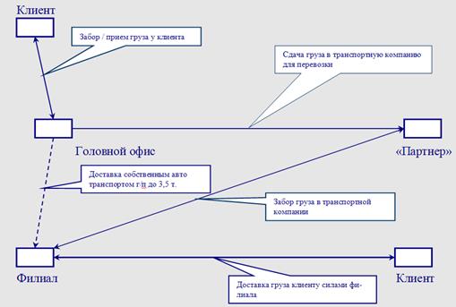 Поэтому, чтобы изначально избежать допущенных ошибок «коллегами» по рынку, необходимо показать клиенту прогнозируемую частоту отправок, а как следствие скорость доставки и ее качество при открытии филиальной сети, придется пользоваться услугами «коллег» по рынку, но забор груза его доставку осуществлять силами филиала. При этой схеме первоначально придется работать в «0» или даже в убыток. Но это неизбежные, но и необходимые расходы, без которых развития транспортно экспедиционной деятельности не возможно.