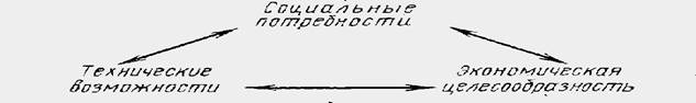 Вершины этого «причинного, треугольника» идентифицируют движущие силы развития производства, его ребра — обоюдные связи между ними. Поэтому задачи планирования и прогнозирования нельзя рассматривать изолированно. В процессе прогнозирования и разработки плана обязательно производится анализ взаимодействия целей, способов и технических средств их достижения, ресурсов, необходимых для их реализации, и определяются по принятым критериям эффективности оптимальные пути развития народного хозяйства.