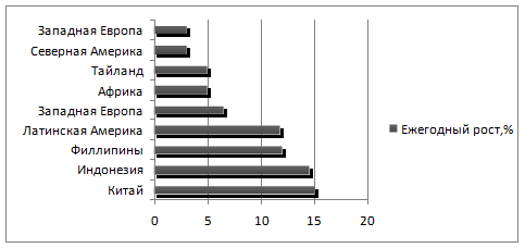 В разных странах изменения в розничной торговле молочными продуктами характеризуются совершенно разными темпами в связи с ростом доходов и увеличением городского населения. Пропаганда через СМИ, а также появление новых видов каналов реализации способствуют росту продаж в странах, где молочные продукты только-только начинают находить своих потребителей. Например, в Китае потребление молочных продуктов растет со скоростью 15% в год. Сети супермаркетов помогают ускорить этот рост потребления, предоставляя потребителям доступ к широкому выбору продуктов и брендов. Правительство страны способствует изменению структуры спроса, пропагандируя потребления молока в школах как средство для улучшения рациона детского питания. На других растущих рынках развивающихся стран рост рынка молочных продуктов составляет более 10% в год (рис. 2).