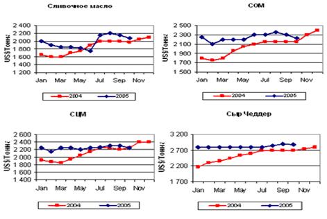 В результате, цены сохранились на высоком уровне в 2005 году и близки к рекордному максимуму конца 2004 года, когда проблема поставок из Новой Зеландии привела к значительному росту мировых цен.