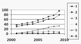 Аналогічно аналізуємо фінансові показники діяльності «Аерофлоту». Коливання та динаміку зміни цих показників за період з 2001 до 2009 року бачимо на діаграмі.
