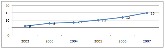 В таблице 1 приведена динамика роста производных инструментов только за последний год.