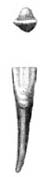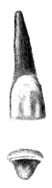 Один прямий, тонкий і значно здавлений з боків корінь, що в поперечному розрізі має форму витягнутого овалу. Зовнішня стінка лунки тонша ніж, внутрішня.