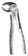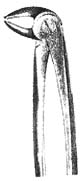 Щипці зігнуті по ребру, з вузькими щічками, коронкові (щипці зігнуті по ребру мають дзьобоподібну форму. Вісь щічок і вісь ручок утворюють прямий або близький до нього кут. Всі складові частини щипців розміщені у вертикальній площині, ручки одна над другою. Щічки щипців вузькі з рівчачками на внутрішній стороні, кінець їх заокруглений, при змиканні не вони не сходяться).