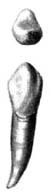 Цей зуб має один заокруглений, дещо здавлений з сторін (особливо у верхній частині) корінь. Часом він викривлений. Щічна стінка альвеоли в цих зубах дещо тонша, ніж язична, або дві стінки майже однакової товщини.