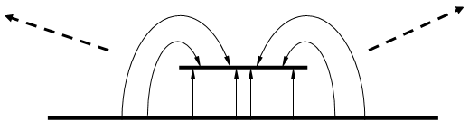 3. Мікросмушкова лінія (microstrip line) – МСЛ. Тут ємність дуже велика, енергія сконцентрована. Підкладка з діелектрика