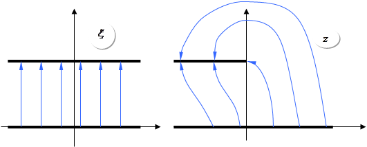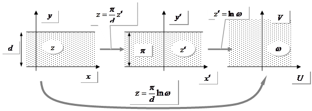 Для того, щоб знайти розв’язок у верхній півплощині, необхідно перетворити її в конденсатор, використовуючи перетворення зворотне до
