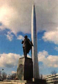 Труды Константина Эдуардовича Циолковского в значительной степени способствовали развитию ракетной и космической техники в СССР и других странах. За "Особые заслуги в области изобретений, имеющих огромное значение для экономической мощи и обороны Союза ССР" Циолковский в 1932 награжден орденом Трудового Красного Знамени. Накануне 100-летия со дня рождения Циолковского в 1954 АН СССР учредила золотую медаль им. К. Э. Циолковского "3а выдающиеся работы в области межпланетных сообщений". В Калуге и Москве сооружены памятники учёному; создан мемориальный дом-музей в Калуге; его имя носят Государственный музей истории космонавтики и педагогический институт, школа в Калуге,Московский авиационно-технологический институт. Именем Циолковского назван кратер на Луне. |