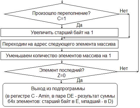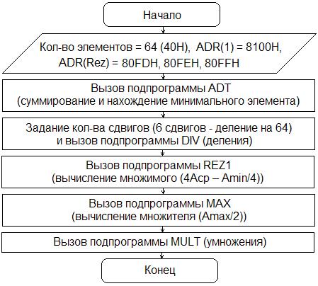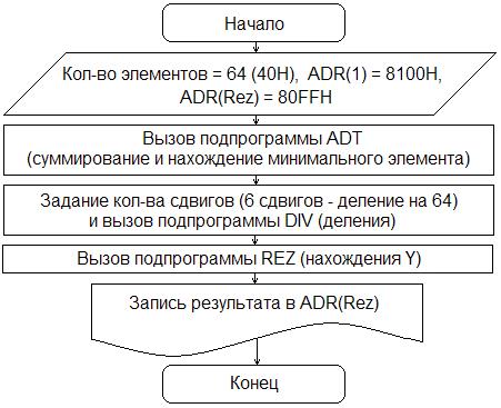 CALL ADT ;вызов подпрограммы ADT (суммирование и нахождение минимального