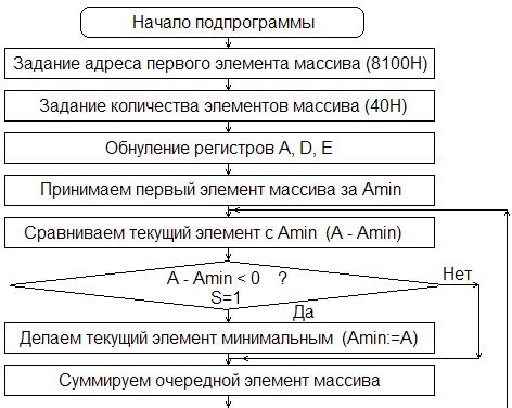 Алгоритм подпрограммы ADT (суммирования и нахождения минимального элемента):