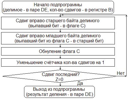 Алгоритм подпрограммы DIV (деления через циклический сдвиг вправо с переносом):