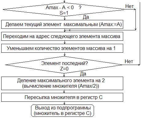 MOV B , C ;загрузить множитель (AMAX /2) в регистр В