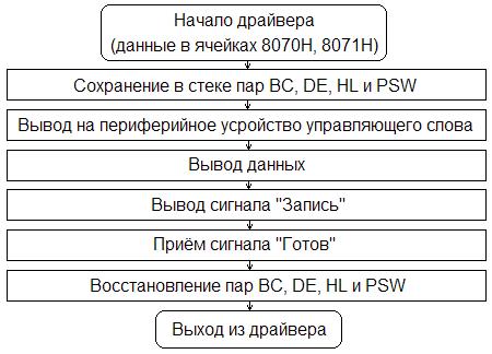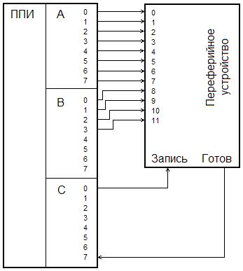 Разработать драйвер вывода информации (разрядностью 12 бит) на внешнее устройство с помощью параллельного интерфейса ППИ (К580ВВ55).