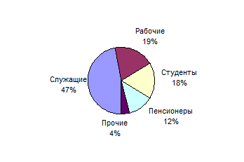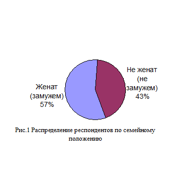 Для сбора первичных данных были проведены анкетные опросы 100 респондентов. Из общего числа опрошенных 63% были женщины, 37 - мужчины. Распределение опрошенных по социальной принадлежности, возрасту, семейному положению представлено на рис. 1 – 4.