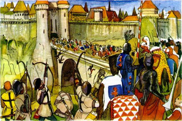битве при Кресси на севере Пикардии армия Эдуарда III наголову разгромила войско французского короля Филиппа VI. Эта победа позволила англичанам, сломив 11-месячное героическое сопротивление защитников, взять важный стратегический пункт — крепость-порт Кале. Правда, развить наступление на севере англичане всё же не смогли и в 1347 г. заключили перемирие, которое продлилось восемь лет. Это было недолгое, но всё-таки затишье.