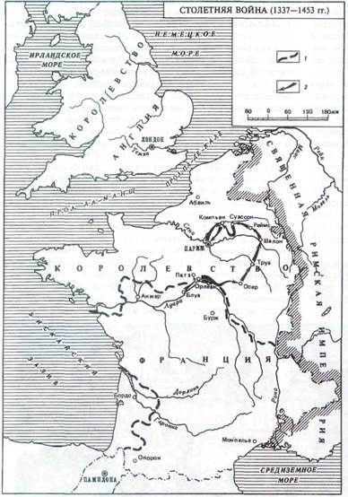 На самом деле война назревала очень давно. Причиной её были, разумеется, не лилии и леопарды в гербе Англии, а старинный спор двух государств. Ещё в XII в. часть земель на юго-западе Франции стала владением английского короля. К XIV в. эта территория значительно уменьшилась, но область Гийень продолжала оставаться предметом спора двух королевств. Гийень была тесно связана с Англией торговлей, а местные сеньоры, желая сохранить свою независимость, соглашались скорее числиться в подданных далёкого английского короля, чем подчиниться реальной власти французского. Они выступали на стороне Англии даже тогда, когда вся остальная Франция с ней воевала. Поэтому складывалось так, что борьба французов за Гийень стала одновременно и борьбой за объединение Французского королевства. Вторым — камнем преткновения» двух стран являлась богатая Фландрия, на которую и Франция, и Англия давно имели виды. Кроме того, предъявляя претензии, английский король тешил себя мыслью о возмож-