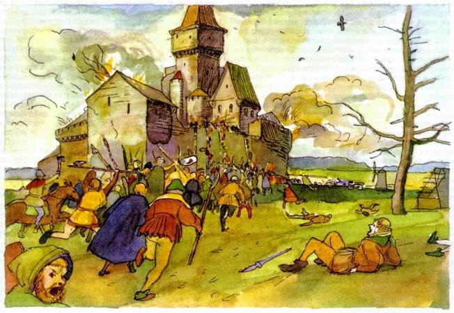 Недовольство народа вылилось в восстания, которые несколько лет подряд сотрясали и без того разорённую страну. В 1356 г. вспыхнуло восстание в Париже. Поводом к нему послужил отказ дофина, сына пленного короля, выполнить требования Генеральных штатов: отправить в отставку членов Королевского совета и других важных государственных лиц. Наследника, на глазах которого были убиты двое его приближённых, восставшие вынудили бежать из столицы. Вслед за Парижским восстанием в мае 1358 г. разразилась Жакерия. «Жаками-простаками» тогда презрительно называли дворяне французских крестьян. И эти «жаки», не в силах больше терпеть навалившиеся на них беды, начали настоящую крестьянскую войну. Жители близлежащих селений организовывали отряды, вооружались переделанными из кос пиками (страшными с виду, но неудобными в бою), вилами; выбирали командира — «капитана» — и вступали в бой с местными сеньорами. «Жаки» нападали на замки, жгли документы, в которых были записаны феодальные повинности, убивали самих господ, словно стремясь «искоренить дворян всего мира и самим стать господами». Восстание охватило большую часть областей Северной Франции, и правительству потребовалось приложить немалые усилия, чтобы его подавить. У селения Мелло армия восставших встретилась с войском рыцарей. Её предводителя, Гильома Каля, обманом заманили в лагерь феодалов и убили. Крестьян, лишившихся своего военачальника, не трудно было разгромить. Но ещё на протяжении нескольких месяцев после этого в разных частях страны продолжали действовать разрозненные крестьянские отряды. Дворяне жестоко расправились с побеждёнными: их казнили, подвергали пыткам, облагали