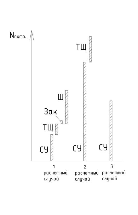 Рис.5. Оценочный график потребных мощностей гидроприводов на разных расчетных режимах.