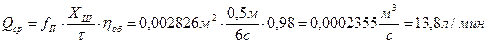 Средний расход жидкости в цилиндр при выдвижении штока: